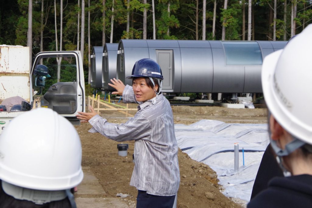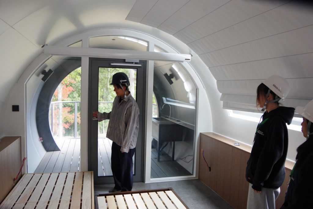 また、最先端のトレーラーハウスや透明ドーム型テントの構想など、普段なかなか体験できない先進的な宿泊スタイルも紹介していただき、学生たちは「ホテルの新たな形にワクワクします!」「完成したら、ぜひ泊まりに来たいです」と大変興味を持って見学していました。建設現場を見ながら、未来の観光の姿について想像を膨らませる様子も見られました。