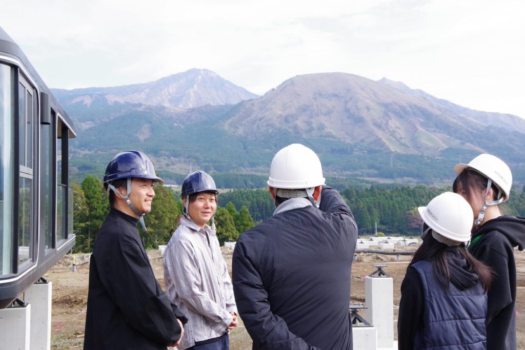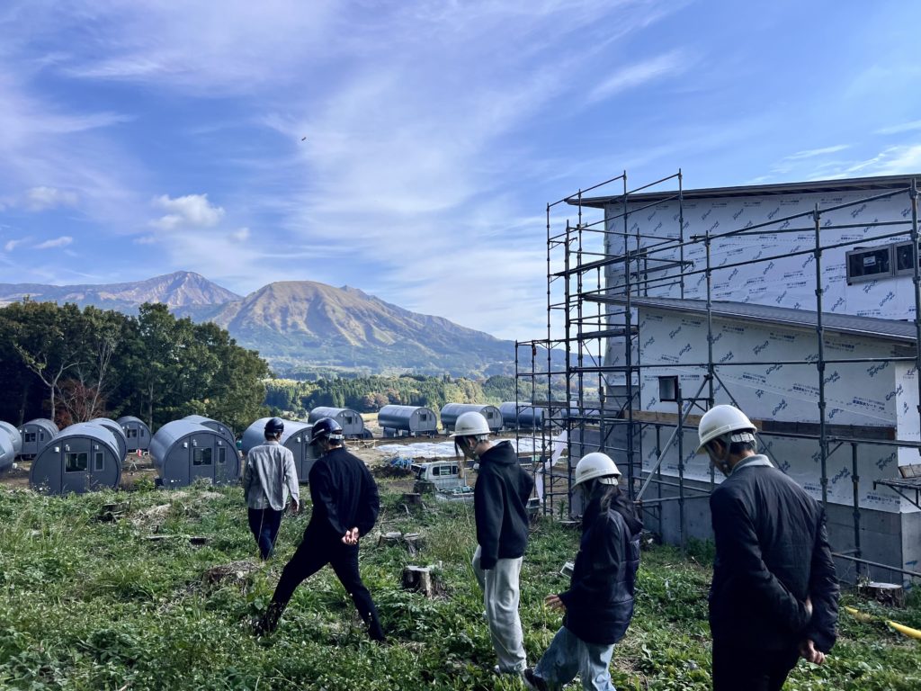 地域観光デザイン学科の学生たちは、南阿蘇で来春開業予定の「南阿蘇フィールドホテル」の建設現場を見学しました。