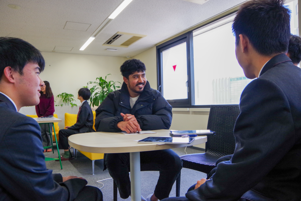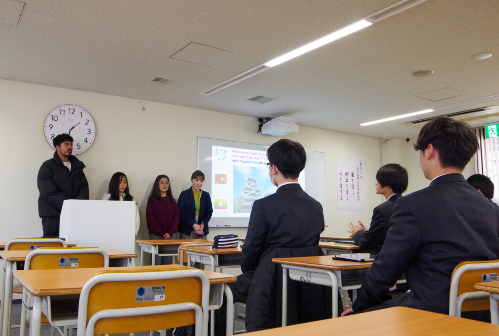 ミャンマー、ネパール、スリランカ出身の3名の国際学生に向けて、勇志国際高校の皆さんが地元・熊本の魅力を、英語で紹介する取り組みです。地域の魅力をあらためて見つめ直しながら、国境を越えて同世代が言葉を交わす、温かな時間が流れていました。